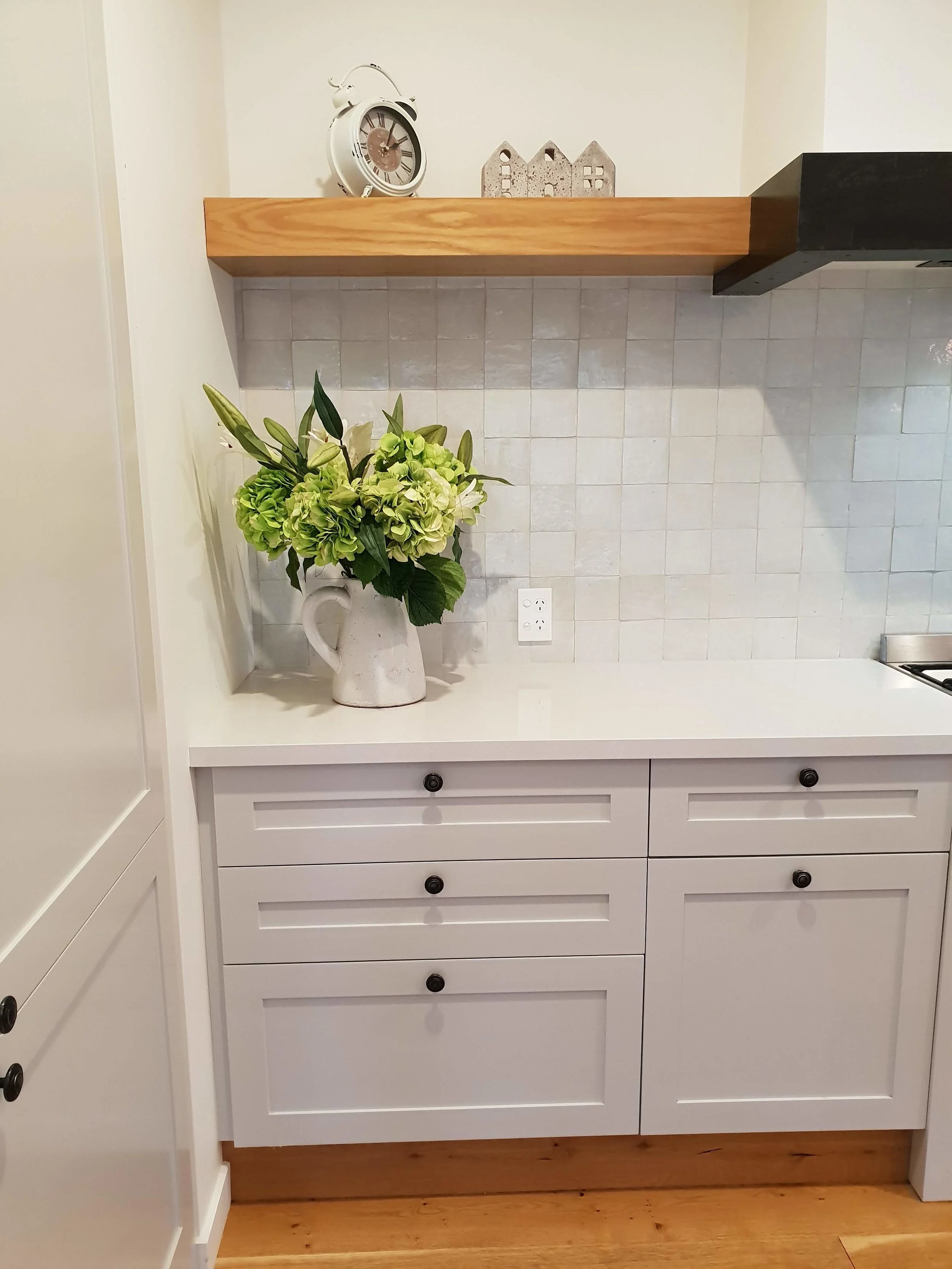 My client lives in the country with beautiful garden landscaping and a love for her horses. She wanted to create a casual homely feel to her kitchen where friends come to wine, dine, talk horses and celebrate the simplicity of country life